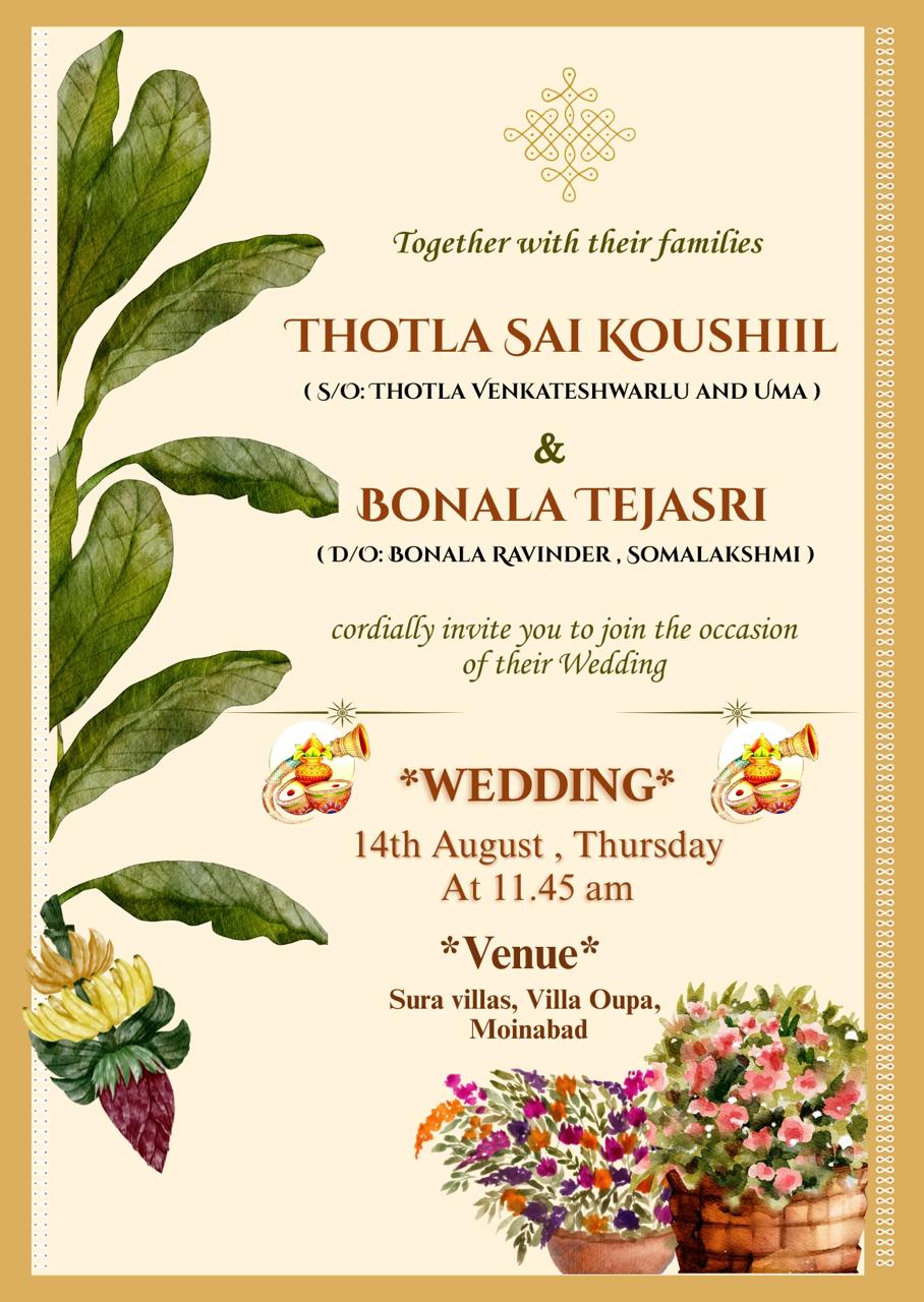 Sumuhurtham - 11.45 AM IST, Sura Villas, Villa Oupa, Moinabad.